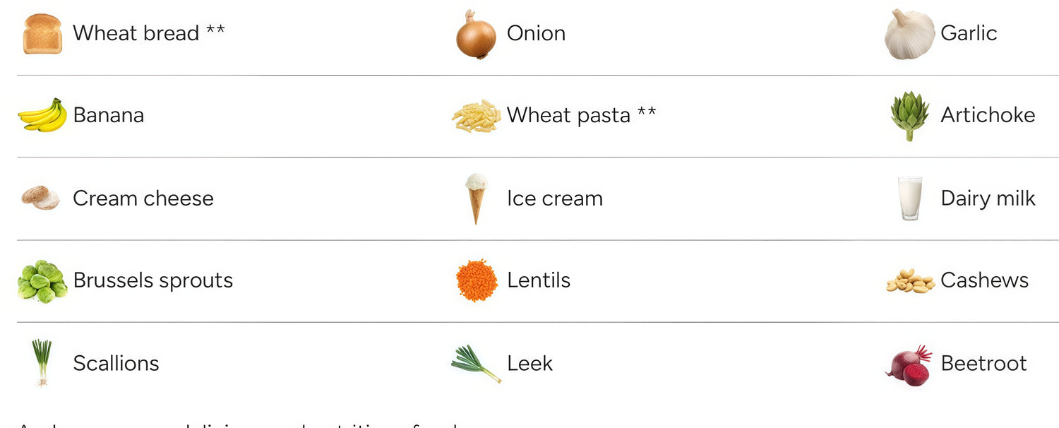 These foods contain FODMAPs—natural carbohydrates that can ferment rapidly in the gut and lead to symptoms, particularly for those with sensitive digestion or IBS.