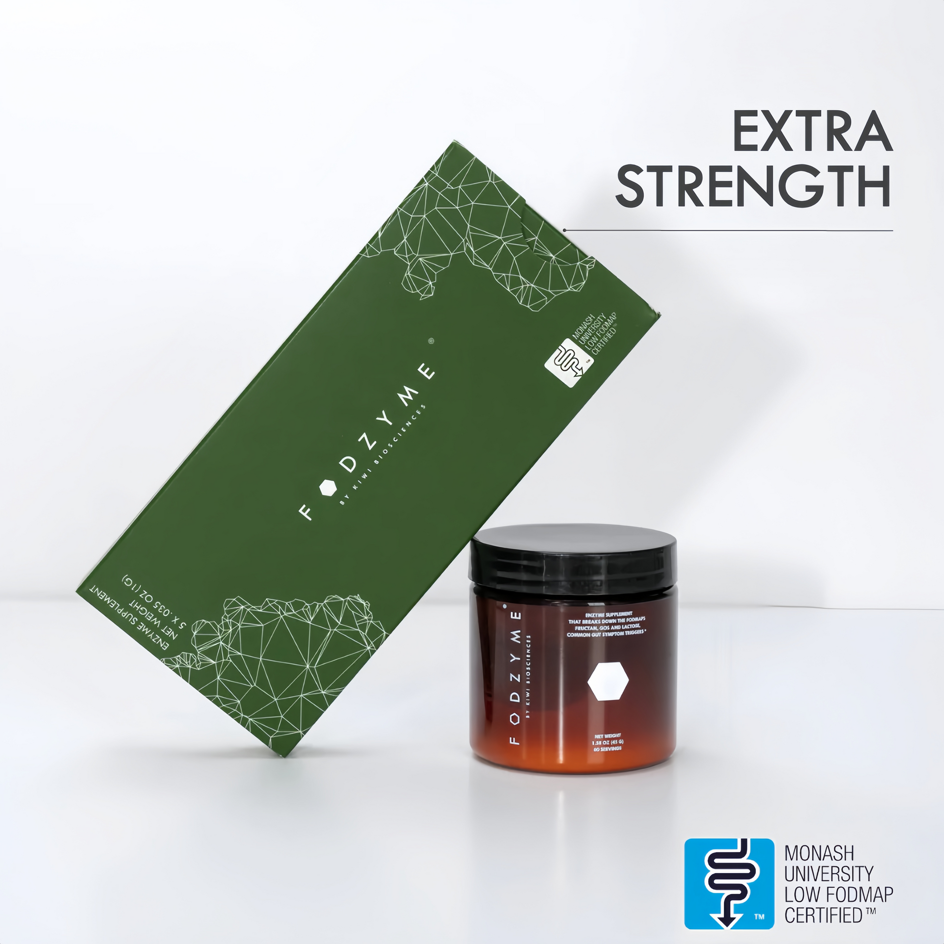 FODZYME®is a tasteless enzyme powder designed to break down FODMAPs (fructan, GOS, and lactose) in food to make meals more digestible. It's formulated specifically for people with FODMAP sensitivities.